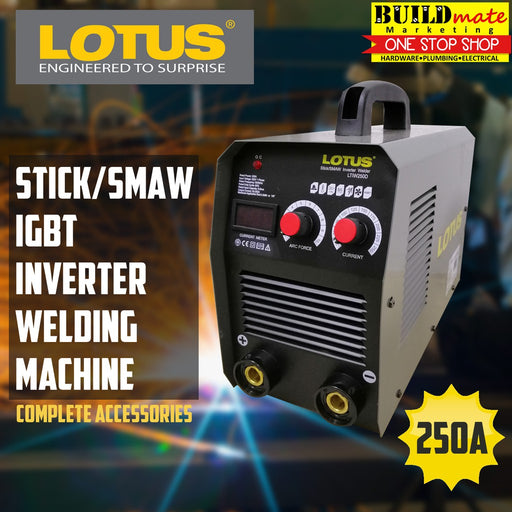 Buildmate Online DepotLOTUS Arc Inverter Welding Machine 250A LTIW250D •BUILDMATE• LWM SPECIFICATIONS: ►With digital display ►Input Voltage:220V 1 Phase ►Duty Cycle: 6...