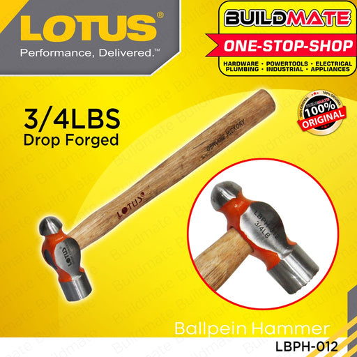 Buildmate Online DepotLOTUS Ballpein Hammer Genuine Hickory 3/4lbs LBPH-012 •BUILDMATE• LHT LUTOS SPECIFICATIONS: ►Genuine Hickory ►3/4lbs