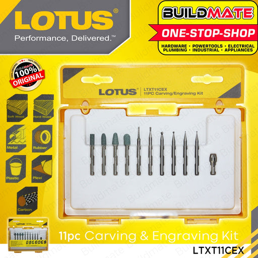 Buildmate Online DepotLOTUS Carving Engraving Kit for Rotary Die Grinder with Case 11 PCS/SET LTXT11CEX •BUILDMATE• SPECIFICATIONS: ►11 PCS/SET ►For Die Grinder ►High Q...