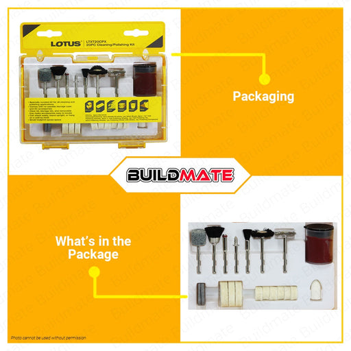 Buildmate Online DepotLOTUS Cleaning Polishing Kit Set For Rotary Die Grinder 20 PCS/SET LTXT20CPX •BUILDMATE• SPECIFICATIONS: ►20 PCS/SET ►For Rotary Die Grinder ►High ...