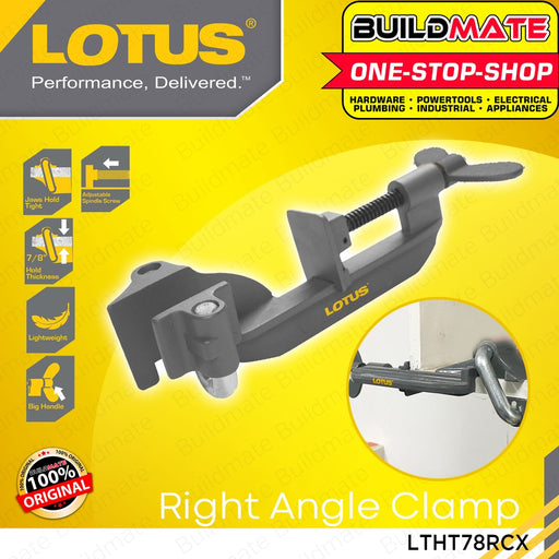 Buildmate Online DepotLOTUS Right Angle Clamp 7/8" LTHT78RCX •BUILDMATE• LHT SPECIFICATIONS: ►Adjustable spindle screw ►Jaws hold tight ►7/8" Hold Thickness ►lightweig...