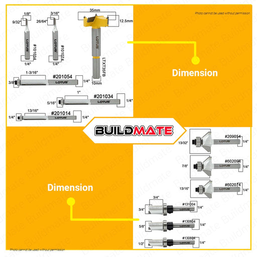LOTUS Router Bits 1/4" Inch / 355mm Chamfer Bit Flush Trim Bit Forstner Bit Straight Bit •BUILDMATE•