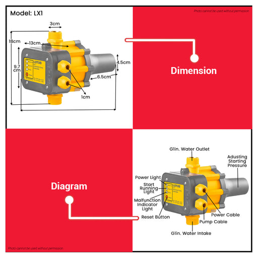 Buildmate Online DepotNo reviewsLotus Auto Pump Controller LX1 | LX2 LPUMP Available in model:- LX1- LX2 SPECIFICATIONS:- Voltage: 220V AC, 50/60Hz- Power Rating: Up to 1.1 kW (1....