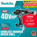 BULDMATE Makita 40V Max Li-Ion Cordless Hammer Driver Drill Reversible Variable Speed XGT HP001GZ