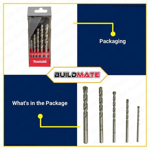MAKITA Original TCT Masonry Drill Bit Set 5PCS/SET D-05175 •BUILDMATE•