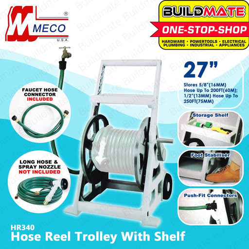 MECO Outdoor Garden Hose Reel Cart Set with Wheels Trolley Shelf 27" #HR340 AUTHENTIC •BUILDMATE•