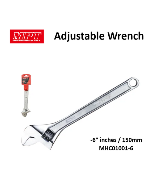 Buildmate Online DepotNo reviewsMPT 6" inches Adjustable Wrench MHC01001-6 HT •MOST PROFESSIONAL TOOLS • SPECIFICATIONS: -Model: MHC01001-6-Size: 6″/150mm-45# Carbon steel forge...