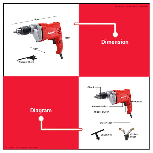 MPT 450W Electric Drill 10mm MED4508V-ECO PT • MOST PROFESSIONAL TOOLS •
