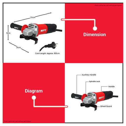 MPT 1100W Angle Grinder MAG11003 PT • MOST PROFESSIONAL TOOLS •
