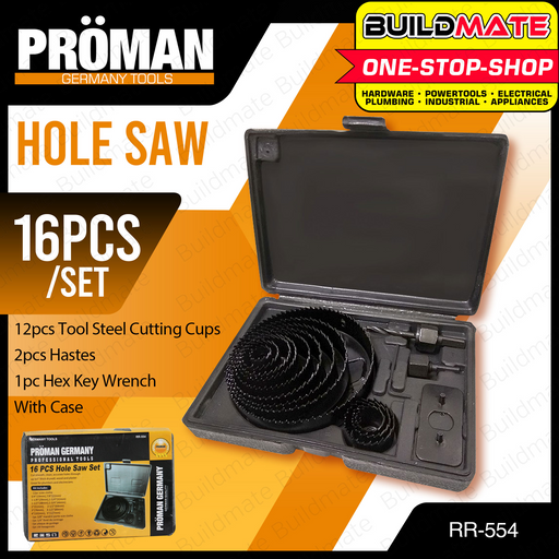 PROMAN GERMANY Hole Saw Holesaw 16PCS/SET RR-554 •BUILDMATE•