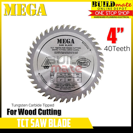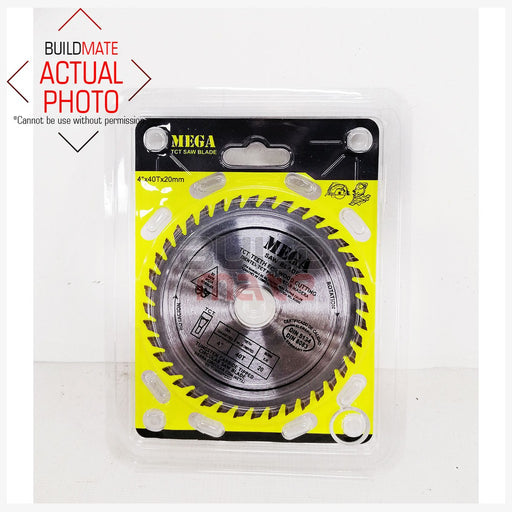 Buildmate Online DepotMEGA TCT Saw Blade For Wood Cutting 4" 40T •BUILDMATE• SPECIFICATIONS: ►Tungsten Carbide Tipped ►4" ►40Teeth ►For wood Cutting