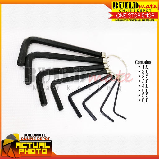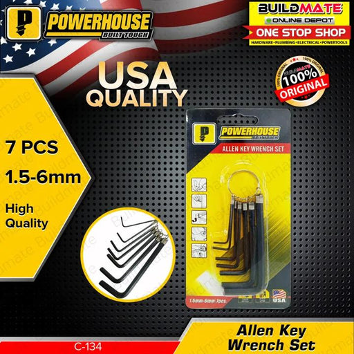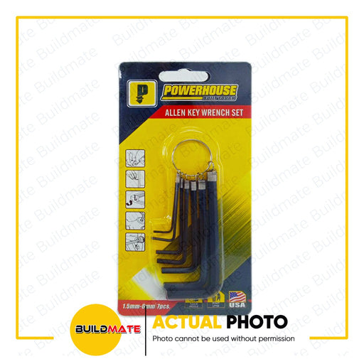 Buildmate Online DepotPOWERHOUSE 7PCS/SET Allen Key Wrench Set 1.5mm to 6mm C-134 •BUILDMATE•SPECIFICATIONS:►7PCS/SET►1.5mm to 6mmUSES:►used for for driving bolts and sc...