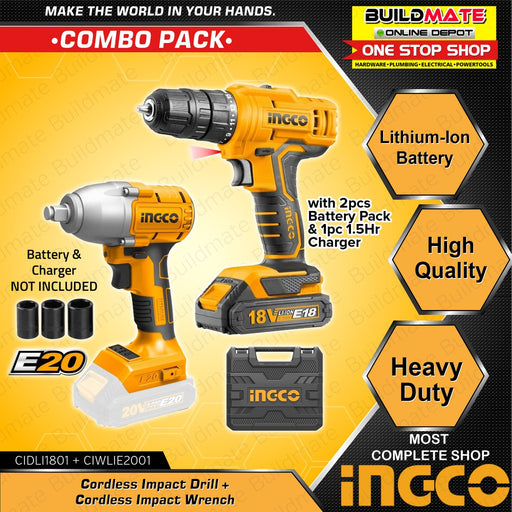 [COMBO] INGCO Cordless Drill 18V CDLI1801 + Cordless Impact Wrench 20V CIWLIE2001 •BUILDMATE• IPT