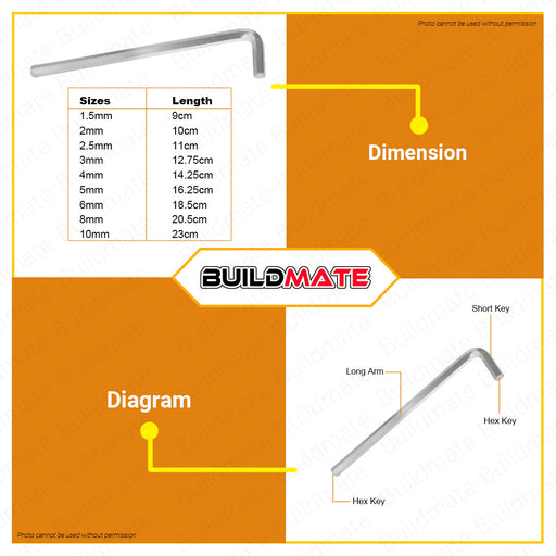 Buildmate Online DepotHOYOMA Hex Key Wrench 10 PCS/Set Black Finishing Allen Wrench Tools Repair H-NL002 100% ORIGINAL / AUTHENTIC •BUILDMATE• HYMHT SPECIFICATIONS: ►M...