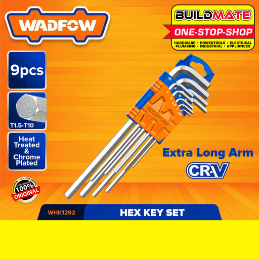 Buildmate Online DepotWADFOW 9PCS/SET Hex Key Extra Long Arm Cr-V Steel Hex-L Allen Wrench Tools Repair WHK1292 100% ORIGINAL / AUTHENTIC •BUILDMATE• WHTSPECIFICATIONS:►...