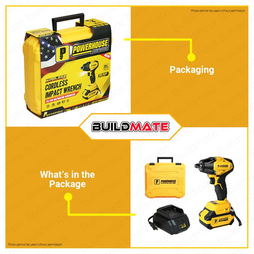 Buildmate Online DepotPOWERHOUSE Wireless Professional Cordless Impact Wrench 20V 4.0 Ah Li-Ion Battery & Charger PH-20V-WLPROCIWBRUSH | 100% ORIGINAL / AUTHENTIC •B...