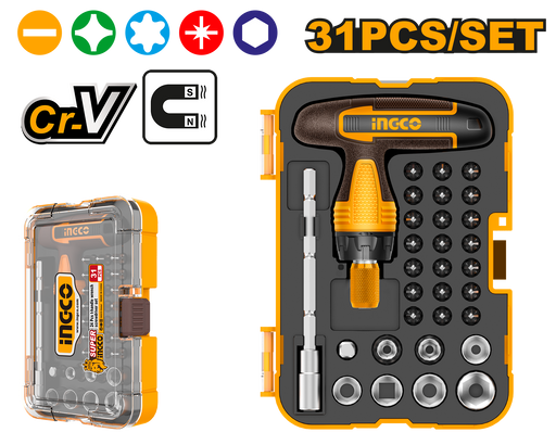 INGCO 31pcs T-Handle Wrench Screwdriver Set For Efficient Fastening & Repair Tasks HKSDB0318 IHT - BUILDMATE