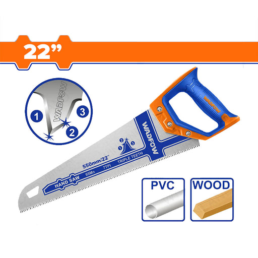 Buildmate Online DepotBUILDMATE Wadfow 22" Inch 7TPI Fast Cut Heat Treatment Hand Saw for Sawing Trimming Gardening PVC Wood Cutting Hand Tool WHW8G22 • WHT SPECIFICATI...