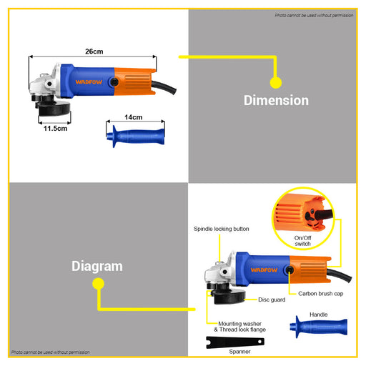 WADFOW Super Product Electric Angle Grinder 800W M10 WAG35802P • WPP
