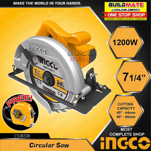 Buildmate Online Depot[COMBO B] INGCO Circular Saw CS18518 + Jigsaw JS400285 +FREE INGCO GOGGLES, GLOVES & TAPEMEASURE •BUILDMATE• IPT SPECIFICATIONS:CS18518 ...
