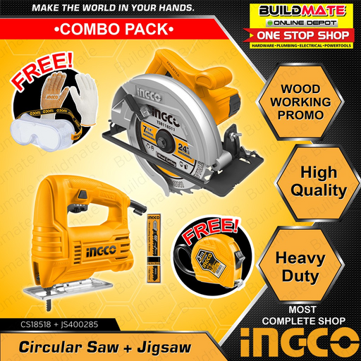 [COMBO B] INGCO Circular Saw CS18518 + Jigsaw JS400285 +FREE INGCO GOGGLES, GLOVES & TAPEMEASURE •BUILDMATE• IPT