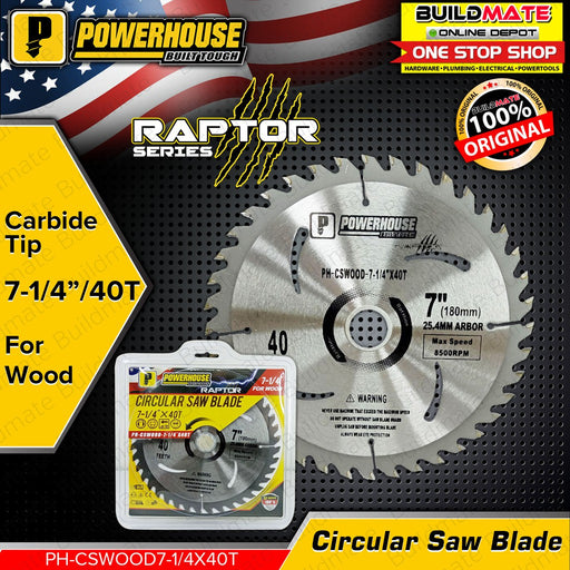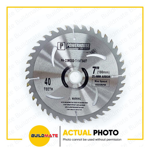 Buildmate Online DepotBUILDMATE Powerhouse Circular Saw Blade Carbide Tip For Wood 7-1/4" 40T PH-CSWOOD7-1/4X40T - PHPTA SPECIFICATIONS: ►7-1/4"x40T ►For Wood ►Car...