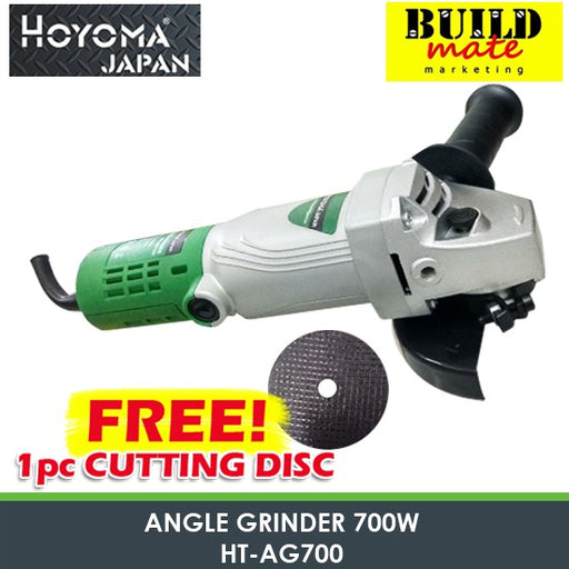 Buildmate Online DepotHoyoma Angle Grinder 700W with FREE 1pc CUTTING DISC! •BUILDMATE• AVAILABLE IN: ►HT-AG700 ►AG10009 SPECIFICATIONS: ►220V~60Hz ►700W ►11000r/min ...