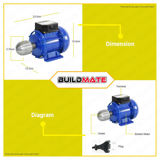Buildmate Online DepotRaijin Coconut Paring Grater 1/2HP 60Hz RCP60 100% ORIGINAL / AUTHENTIC •BUILDMATE• SPECIFICATIONS: ►Model: RCP60 ►Thermally Protected ►Rated Vol...