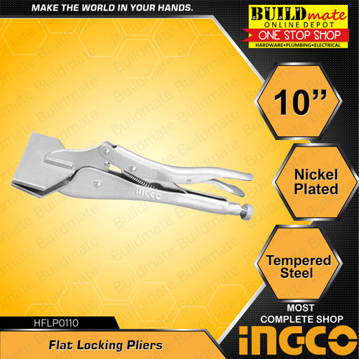 BUILDMATE Ingco Flat Locking Pliers 10" Nickle Plated Drop-Forged Vise Grip Tools HFLP0110 • IHT