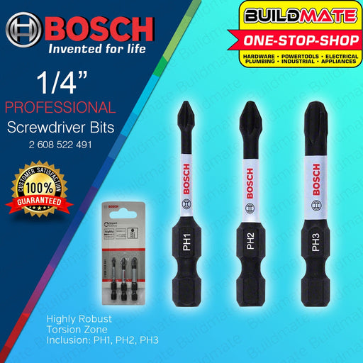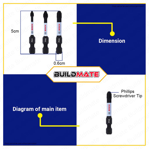 Buildmate Online DepotBOSCH 3pcs/Set Screwdriver Bit Impact Control Power Bit Set Screw Driver 3xPH Power 2608522491 | 100% ORIGINAL / AUTHENTIC •BUILDMATE• BAX SPECIF...