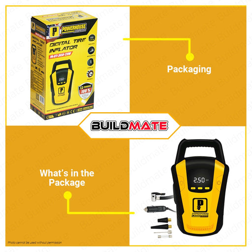 Buildmate Online DepotPOWERHOUSE Digital Tire Inflator Copper Motor With Led Work Light Heavy Duty Air Pump Auto Tire Pump 120W PH-DTI-3650-120W 100% ORIGINAL / AUTHENTI...