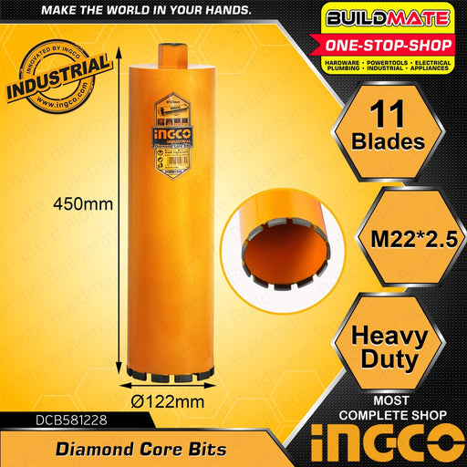 INGCO Diamond Core Bits 122mm Wet Concrete Cutting M22 x 2.5 DCB581228 AUTHENTIC •BUILDMATE•