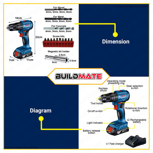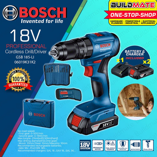 Buildmate Online DepotBosch Professional Cordless Lithium Ion Li-Ion Percussion Screwdriver GSB185-LI 06019K31K2 100% ORIGINAL / AUTHENTIC •BUILDMATE• BLC SPECIFICATIO...