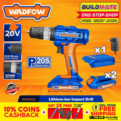 Buildmate Online DepotWADFOW Lithium-Ion Li-Ion Cordless Impact Hammer Drill 2 Speed Gear For Concrete Metal Wood With 2x Battery & Charger 20V WCDP522 | 100% ORIGIN...
