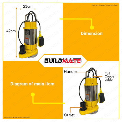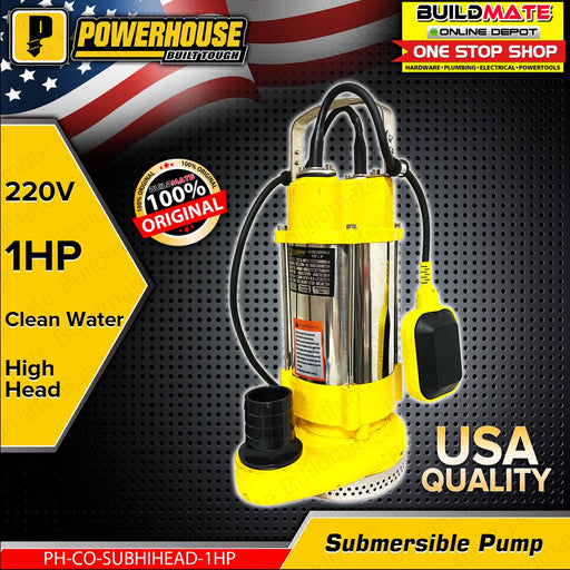 Buildmate Online DepotPOWERHOUSE High Head Clear Water Submersible Pump 1HP PH-CO-SUBHIHEAD-1HP 100% COPPER WIRE •BUILDMATE• PHMS SPECIFICATIONS: ►Model: PH-CO-SUBHIHEA...