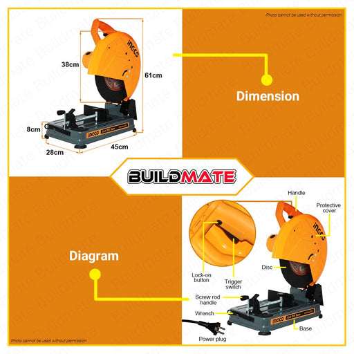 Buildmate Online DepotIngco Cut-Off Chop Saw Machine Heavy Duty 14" COS243558 100% ORIGINAL / AUTHENTIC •BUILDMATE• IPT SPECIFICATIONS: ►Model: COS243558 ►Disc Diameter:...