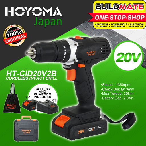 Buildmate Online DepotHOYOMA Cordless Impact Drill 13mm Impact Gun HT-CID20V2B +FREE ECO BAG, BATTERY & CHARGER •BUILDMATE• HYMHTSPECIFICATIONS:►Model: HT-CID20V2B►V...