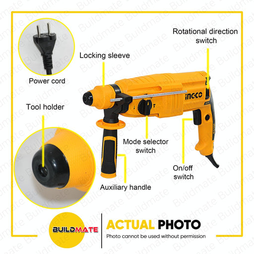 Buildmate Online DepotINGCO SDS Rotary Hammer Drill Plus System Engraver +FREE Drill Bits 800W RGH9028 | 100% ORIGINAL / AUTHENTIC •BUILDMATE• IPT SPECIFICATIONS: ►Input...