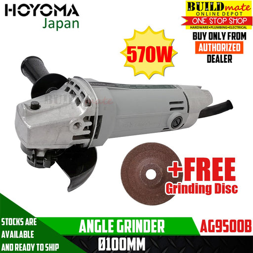 Buildmate Online DepotHOYOMA Angle Grinder 570W AG9500B •BUILDMATE• HYMPT SPECIFICATIONS: ►Voltage: 220V - 60hz ►Power Input: 570W ►Disc Diameter: Ø100mm ►M10 ►No Load ...