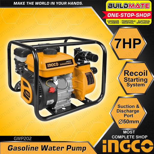 Buildmate Online DepotBUILDMATE Ingco 7.0HP Gasoline Water Pump 2" Inch For Agricultural Irrigation GWP202 - IPTSPECIFICATION:►Model: GWP202►Suction & Discharge Port...