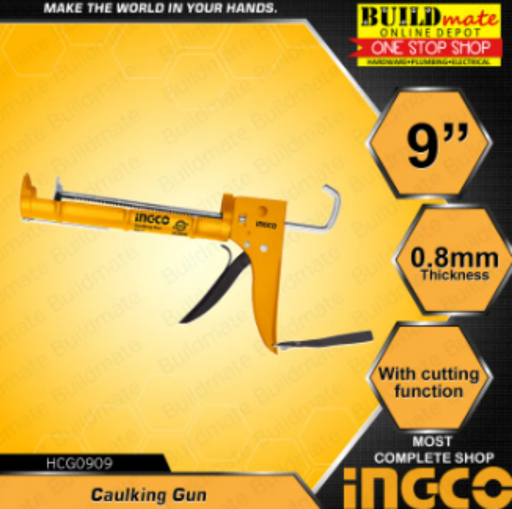 INGCO Original Caulking Gun 9" Ø55mm Skeleton Iron Teeth Cutting Function HCG0909 IHT •BUILDMATE•