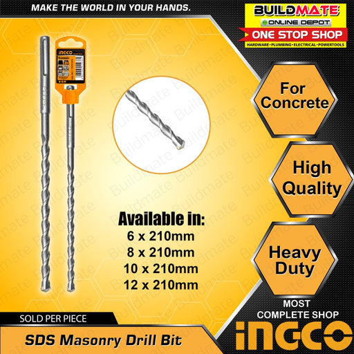 Buildmate Online DepotINGCO SDS Masonry Drill Bit Use for Concrete Drill Bit Hand Tools SOLD PER PIECE •BUILDMATE• IHTAVAILABLE IN:►6 x 210mm►8 x 210mm►10 x 210mm►10x210...