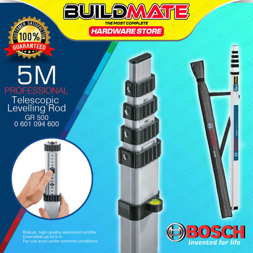 BUILDMATE Bosch Professional Telescopic Levelling Rod GR 500 5 Meters Measuring Pole Surveying Rod Leveling Staff 0601094600 - BMT