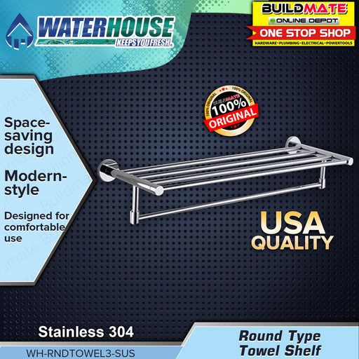 Buildmate Online DepotWATERHOUSE by POWERHOUSE Round Type Towel Shelf Stainless 304 WH-RNDTOWEL3-SUS •BUILDMATE• PHWH SPECIFICATIONS: ►Stainless 304 ►Round Type ►Space ...