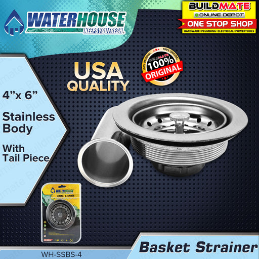 Buildmate Online DepotWATERHOUSE by POWERHOUSE Stainless Basket Strainer with Tail Piece Polished Surface 4" x 6" •BUILDMATE• PHWH SPECIFICATIONS:►4" x 6"►Polished Su...