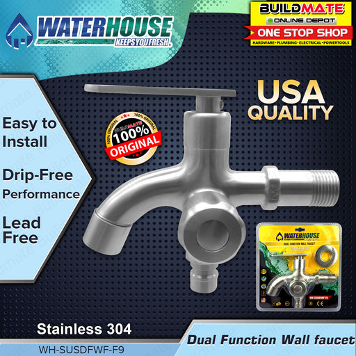 Buildmate Online DepotWATERHOUSE by POWERHOUSE Stainless 304 Dual Function Wall Faucet Design P9 •BUILDMATE• PHWH SPECIFICATIONS: ►Stainless 304 ►Drip-Free Performance...