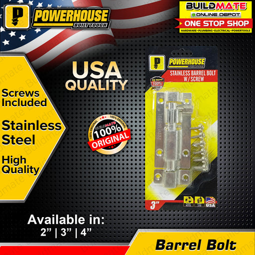 POWERHOUSE Stainless Barrel Bolt with Screw 2" | 3" | 4" SOLD PER PIECE •BUILDMATE• PHDH