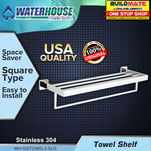 Buildmate Online DepotWATERHOUSE by POWERHOUSE Stainless Square Type Towel Shelf WH-SQTOWEL3-SUS •BUILDMATE• PHWH SPECIFICATIONS: ►Square Type ►Stainless 304 ►Space Save...
