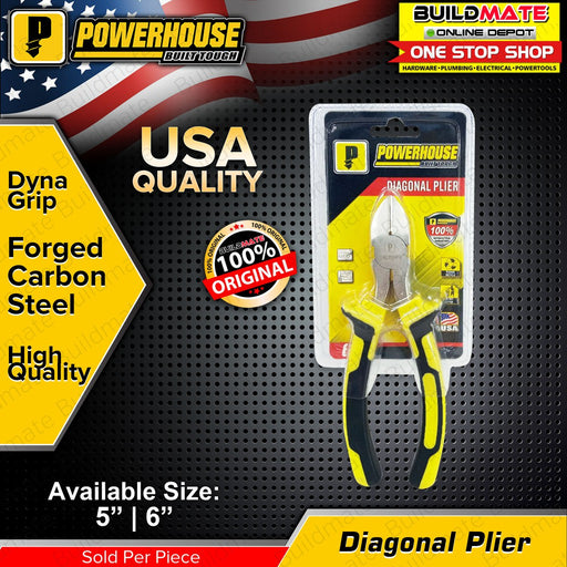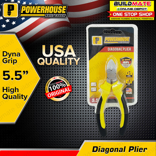 Buildmate Online DepotPOWERHOUSE Dyna Grip Diagonal Pliers 5.5" •BUILDMATE• PHHT SPECIFICATIONS: ►Closed for machined jaw for efficient cutting ►Forged carbon steel jaw...
