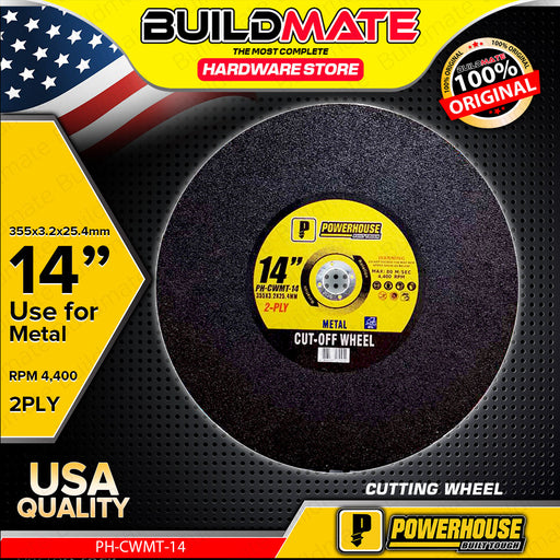 Buildmate Online DepotBUILDMATE Powerhouse 14" 2PLY Metal Cutting Wheel Disc Cut Off Machine 4mm 53-334 - PTAA SPECIFICATION: ►Size: 14" (355x3.2x25.4mm) ►For Metal ►8...